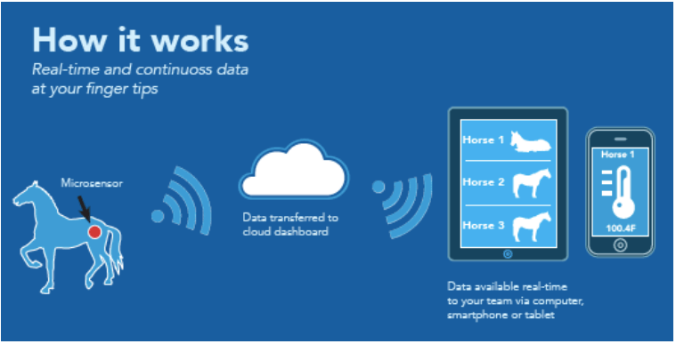 Another worthy entry in the showcase that promised to make life easier for veterinarians whose charges are of the equine variety was the Horse Sense Pegasus Equine System for monitoring critical vital signs that previously required a more “hands-on” approach (I will spare the reader the gory details – you get the idea). It works via a microsensor device that attaches to the horse’s tail and detects abnormal conditions and can alert the animal’s caregivers via smartphone, tablet and computers. This provides owners, veterinarians, and trainers with 27/7/365 access to critical vital signs and postural behavioral/activity data (Figure 2).