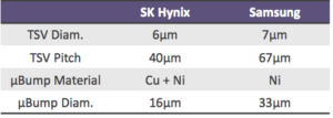 Gone is the speculation for whether 3D TSVs will be realized in high volumes. In his presentation comparing 3D TSV technology trends in memory, MEMS, and sensors, Fraux revealed that the finger print sensor on the iPhone 6s contains TSVs, and are the highest volume TSVs on the market, with 50K wafers produced. Other key players, as we know, are SK Hynix, with TSV in volume production in the HBM, and Samsung with its DDR4 memory. Raux presented detailed comparisons of both processes. In summary, he noted that processes for Samsung and SK Hynix’ stacked memory devices are close and share the same cost structure (Figure 1). Additionally, Beica declared that TSVs have gone mainstream for high-end computing applications. Figure 2 shows the roadmap for TSV product implementation.