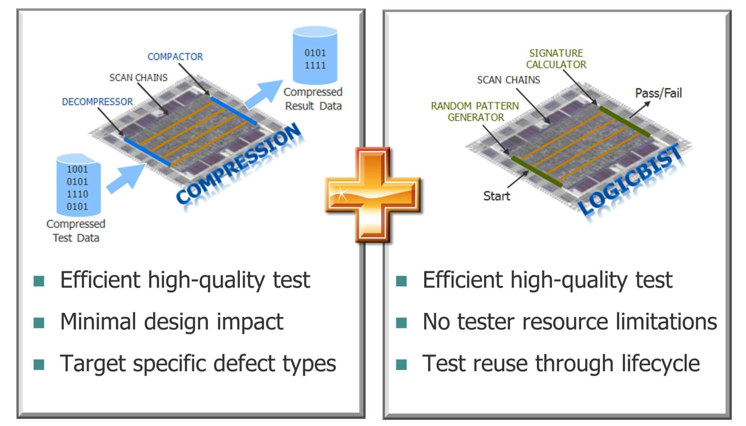 In addition to a high KGD requirement, 3D testing also calls for known-good-interposers, partial stack testing, testing through-silicon vias (TSVs), and die test in-package. Traditional ATPG alone is a thing of the past. A combination of embedded compression and logic BIST delivers the best quality vs. cost (Fig 3).