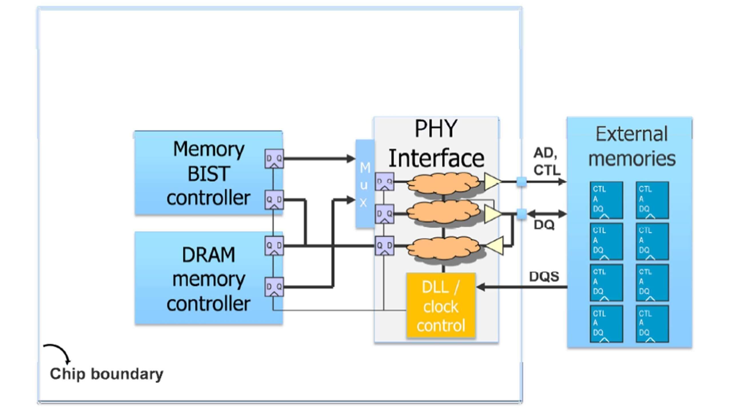 The most common use of 3D and 2.5D packages today is for external memories stacked on logic die or on the interposer, next to a logic die. The memories are usually DRAMs (although other memory types seem to get some tracking now) that follow a standard protocol. We developed a test interface to access external Wide IO DRAMs through their JEDEC standard functional pins. The 3D IC memory BIST includes the physical interface logic (PHY), and is located within the logic die, next to the memory controller and right before the PHY and its associated external memory (Figure 4).