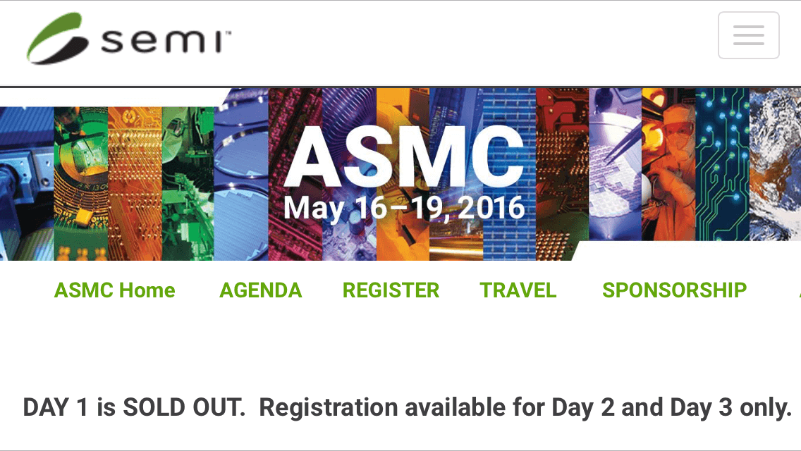 Jonathan Davis, SEMI, has two pieces out on the ASMC 2016 Day One and Day Two Keynotes. See “IBM Keynoter Outlines Disruptive Economy of Things at SEMI’s ASMC 2016,” and “Driving the Digital Age of Manufacturing ─ GE Keynote at SEMI’s ASMC 2016,” for his very well-written takes on the remarks from these two very major players.