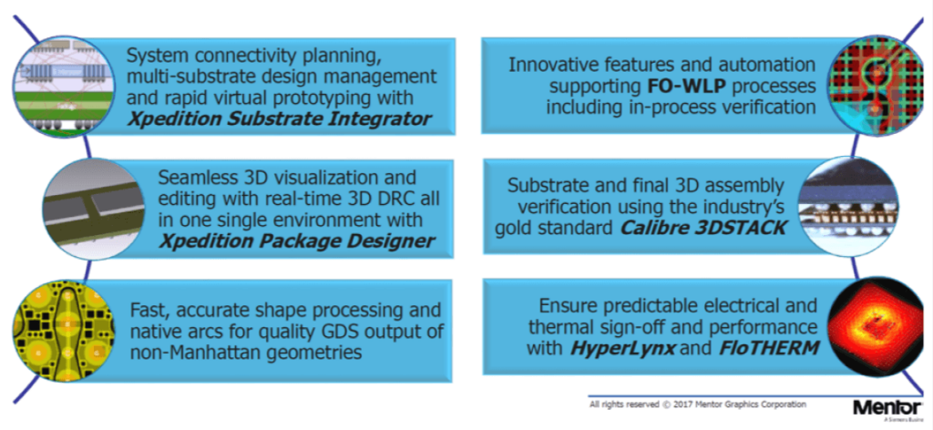 Since 2008, when I started to promote multi-die ICs and advanced packaging technologies, I was hoping that, in addition to the many point tools EDA vendors started to offer, a user-friendly design flow would become available. Only a complete flow can really minimize risk, design time and cost of highly complex designs. Mentor’s end-to-end design solution, in conjunction with the OSAT Alliance program, will enable system and IC designers to meet today’s and future market demands for heterogeneous integration, higher performance per Watt, shorter time to market, lower development and unit cost and of course make IC designs more reliable.