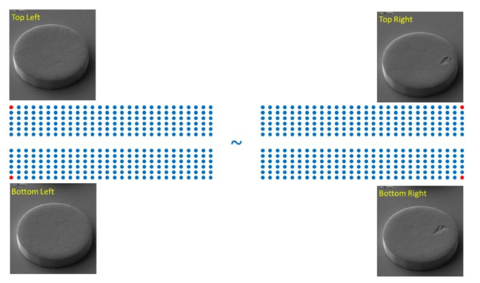 All tests were performed on 300mm test wafers, designed and manufactured at imec and containing micro-bumps with various metallurgies, pitches, diameters, and array sizes (figure 5). The system is now being used routinely to test imec’s micro-bumped wafers. While today’s advanced micro-bump processes are at 40µm pitch, this is, as everything in the semiconductor world, subject to miniaturization. Hence, imec and FormFactor have already started to probe micro-bump arrays at 20µm pitch.