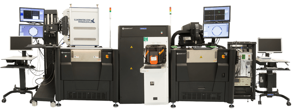 To prove the feasibility of micro-bump probing with these probe cards, a unique full-automatic test system was built consisting of (1) a dual Cascade CM300 probe station from FormFactor (Germany), (2) a hard-docking STS test head with PXI test instruments from National Instruments (Texas, USA), (3) a test head manipulator and docking interface from Reid-Ashman (Arizona, USA), and (4) test program and data analysis software based on LabVIEW and developed at imec (Figure 1).