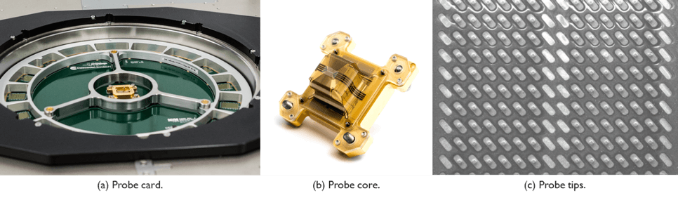 In 2010, Cascade Microtech (now FormFactor) and imec started their collaboration to tackle the fine-pitch micro-bump probing issue. FormFactor provided prototypes of their advanced Pyramid Probe® Rocking Beam Interposer (RBI) probe card technology. This probe card technology contains an IC-design-specific probe core which includes a thin film with MEMS-type probe tips. The high-density probe cores support >1,200 core I/Os. The RBI probe tips require less than 1 gf/tip to make proper electrical contact. The heel of the tip makes physical contact with the wafer, such that the probe mark is typically only 6 × 1 micrometer.
