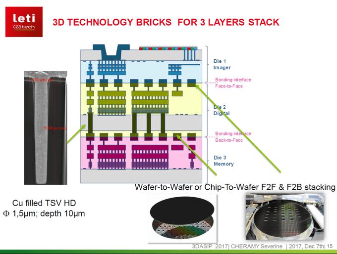 The final presentation of this session was delivered by Leti’s Severine Cheramy. Figure 8 shows how Leti vertically integrates, at the wafer-level, the imager – with 1.4mm pixel pitch – the DSP circuitry, and a memory die. backside illuminated imager and logic are interconnected face-to-face using hybrid bonding, while logic and memory are connected back to face, using TSVs and hybrid bonding. Cheramy mentioned that Leti is evaluating if/how Leti’s CoolCubeTM technology can be utilized for image sensors.