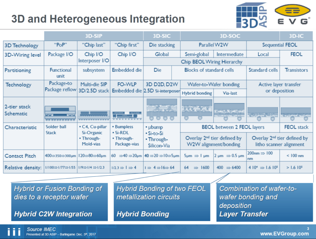 EV Group’s Thomas Uhrmann presented equipment and process solutions for a broad range of integration alternatives and positioned EVG’s manufacturing solutions accordingly. Uhrmann used the matrix imec presented at last year’s 3D ASIP conference to do so. Figure 4 shows how EVG equipment and processes capabilities address all these integration alternatives.