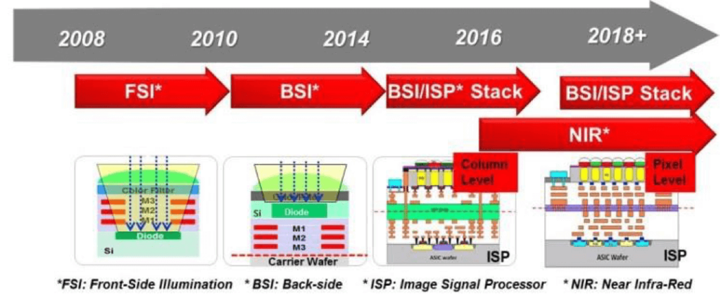 Another important application for multi-die die stacking, in this case vertically, are image sensors. TSMC also has a long and successful track-record in this segment. Figure 5 shows TSMC’s image sensor evolution.
