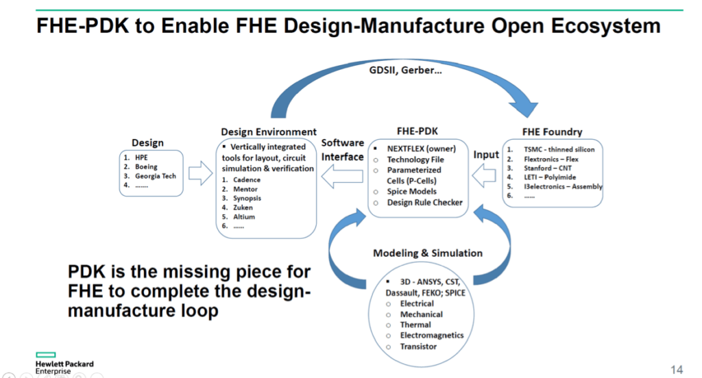 I was very happy when I saw that the FHE is industry is following this proven path. Jim Huang, Sr. Research Scientist at Hewlett Packard Enterprise, presented plans and ongoing efforts to develop, in cooperation with major industry players, a design environment for 3D printed FHEs. Figure 8 below shows how multi-faceted this program is and how many important contributors have been engaged already.