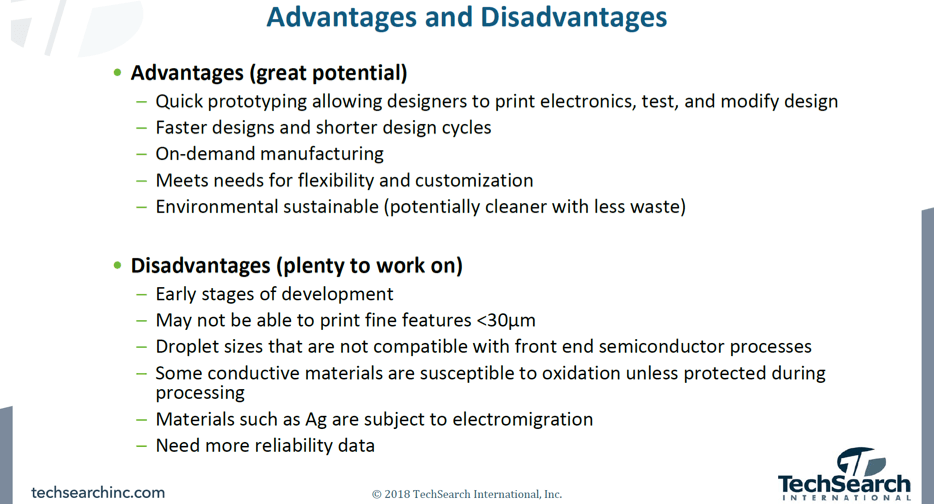 Knowing Jan Vardaman and her in-depth packaging knowledge from many years of cooperation in the 2.5/3D-IC world, I didn’t want to miss her view of the 3D printed electronics technologies. See in Figure 6 below how TechSearch International compares traditional IC packaging with “package-free” 3D printed electronics.