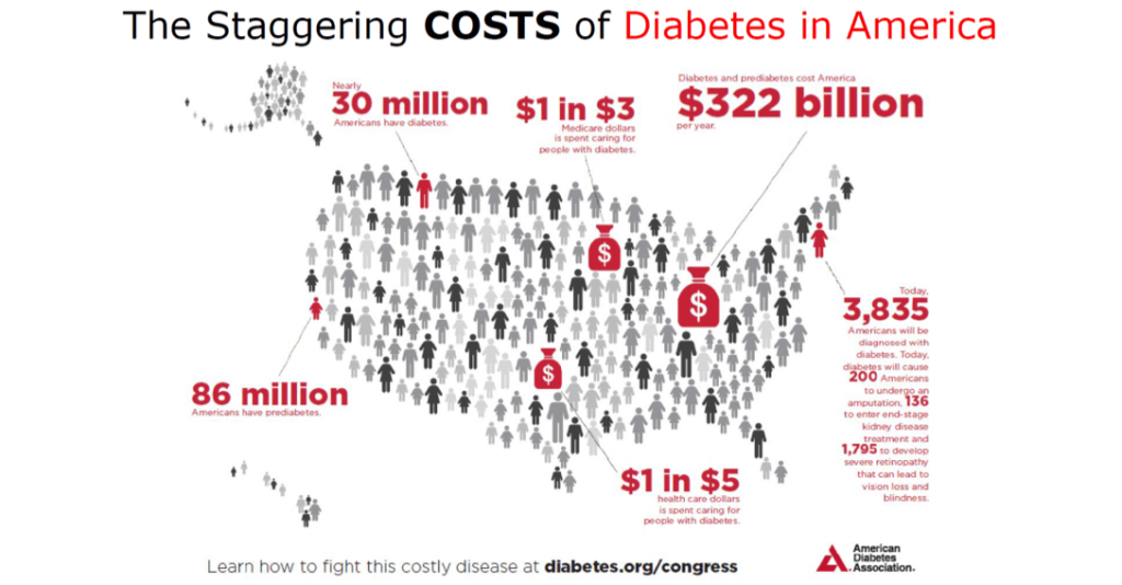 The next speaker, Lin Le, CEO of Bonbouton, surprised me when he stated that the right foot is always a few degrees warmer than the left foot. This temperature difference indicates in diabetic persons if they are likely to develop foot ulcers, which can lead to severe consequences, including amputation and death. His technology, printed into orthotics, uses graphene sensors to capture the temperatures. Because diabetes treatment consumes a major portion of the healthcare cost in the U.S.,(Figure 4) Medicare pays Bonbouton monthly fees for monitoring foot temperature differences in diabetic persons.