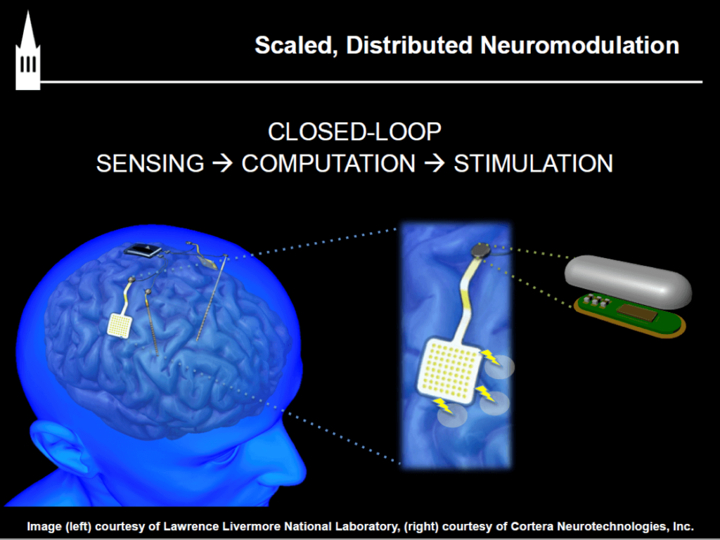 Rikky Muller, co-founder, and CTO of Cortera Neurotechnologies presented an example for impacting human lives with a minimally invasive wireless neural interface. First, she showed a movie how a quadriplegic commanded a robot arm with her brain, through a complex setup of equipment. Then Muller outlined how her company developed, in cooperation with Lawrence Livermore Labs, NovaCentrix and NextFlex, a miniaturized and wireless version of a brain-machine interface. Figure 2.