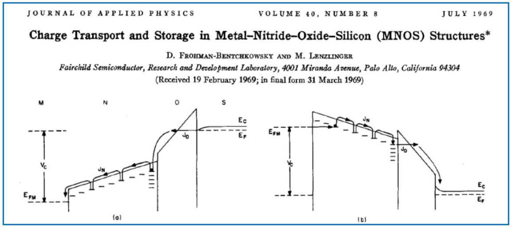 Fairchild Semiconductor, set up by the “Traitorous Eight” who had problems working with William Shockley, had started work on the “MOS” (Metal-silicon diOxide-Semiconductor) system in 1963. This included extensive work on the physics of tunneling in the two silicon nonvolatile memory concepts between 1967 and 1969.
