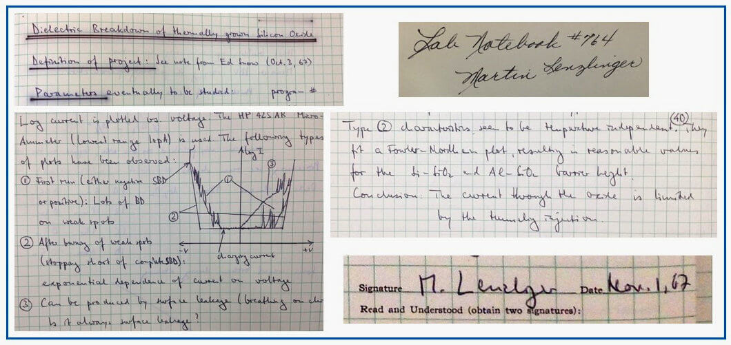 In about 1967, Martin Lenzlinger joined Fairchild reporting to Edward Snow in the surface physics group. Figure 14 shows excerpts from Lenzlinger’s laboratory notebook in late 1967.