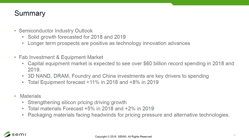Gary Dickerson, CEO Applied Materials, highlighted the importance of AI as a growth driver and, referring to Summit’s 13 MW of power, stated that we need to find ways to reduce power dissipation of electronic systems by 1000 X. Further progress in equipment capabilities and material characteristics, as well as architectures, will be needed to get there.