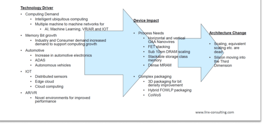 Michael Corbett, managing partner and co-founder of Linx Consulting, talked about wafer fab materials in the era of 3D scaling. He explained that today wafers are 50% of the materials value input for ICs and suggested that silicon wafer prices need to go up, to encourage more investment in wafer fab capacity and capability. Like other presenters, Corbett also predicted change on multiple fronts (Figure 5).