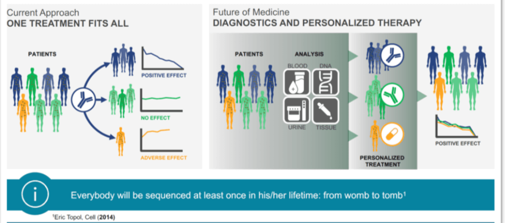 Selexis’ CEO, Igor Fisch, explained that increased computing power – enabled by semiconductors – has lowered the cost of genome sequencing from $ 2.7B in 2003 to $ 100 today. This enables the development of personalized, highly effective drugs (Figure 7).
