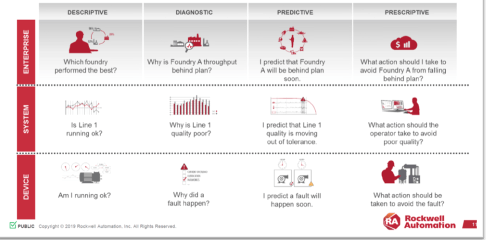 Sujeet Chand, senior VP and CTO at Rockwell Automation, highlighted the value of Big Data and analytics to maintain/improve a factory’s performance (Figure 6). Chand also pointed out that the worldwide growing middle class represents a large market for low/medium volumes of personalized products and requires flexible manufacturing environments. He called for more standards and encouraged compliance, to make factory modifications easier to initiate, more impactful and rewarding. Chand called for domain experts to structure Big Data analysis, to make it scalable and efficient in creating business value.