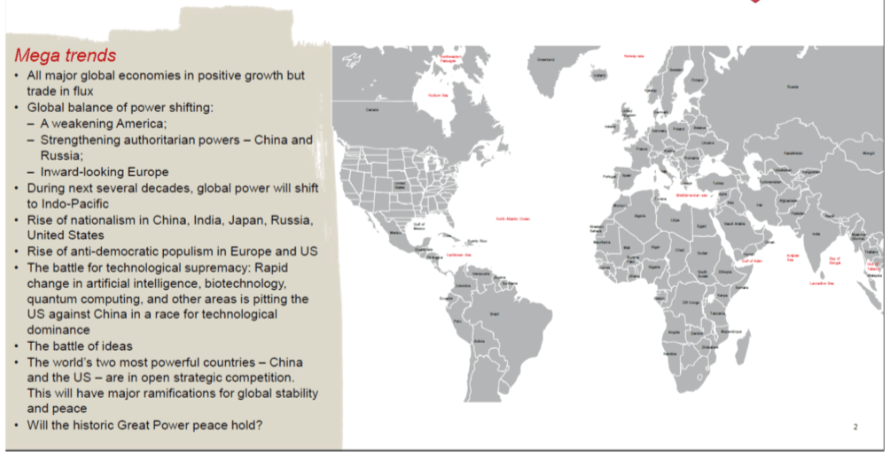 Session 1 focused on economic trends and how they are likely to impact the semiconductor industry. R. Nicholas Burns, retired ambassador and professor at Harvard’s Kennedy School of Government, conveyed his view of strategic global trends, (Figure 1).