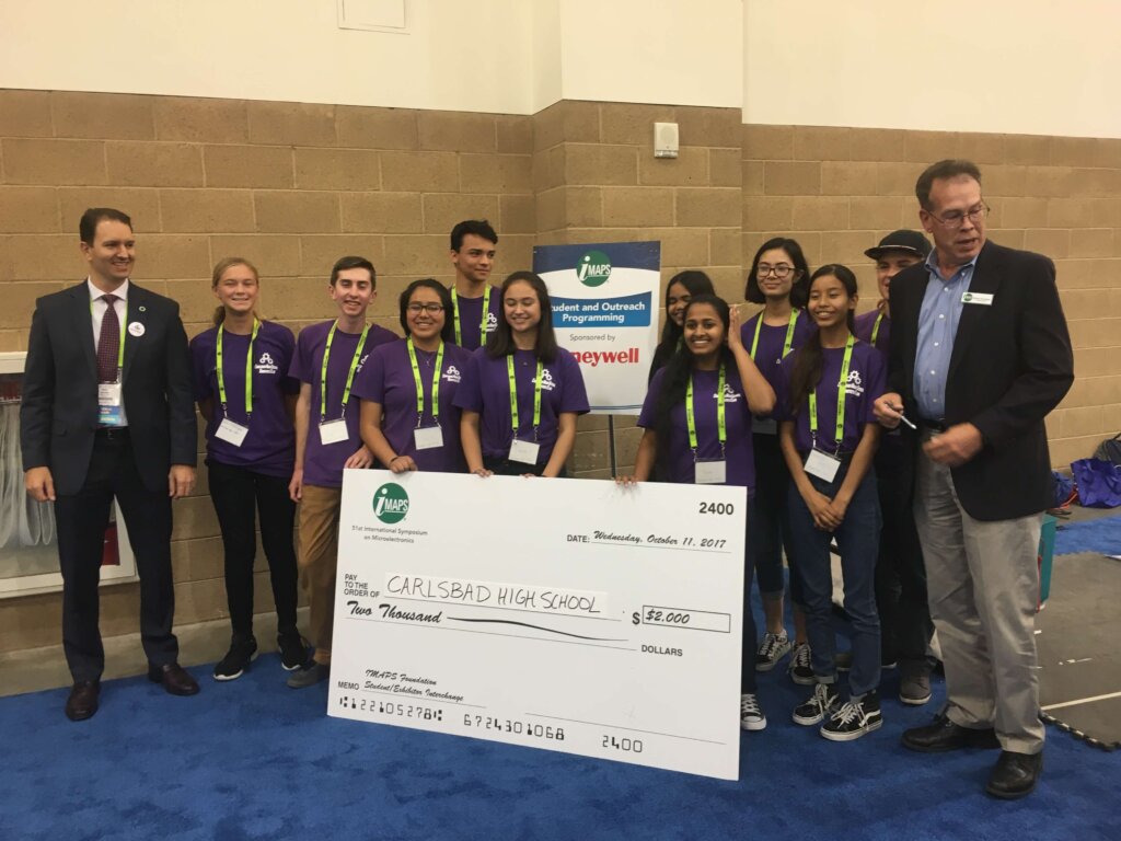 The opportunity presented itself during the 2019 IMAPS International Symposium in Pasadena, where two Carlsbad High School robotics teams; Buffalo Wings, a co-ed team, and Robopuffs, an all-girl team, showcased their entries for the 2018 FIRST Tech Challenge.