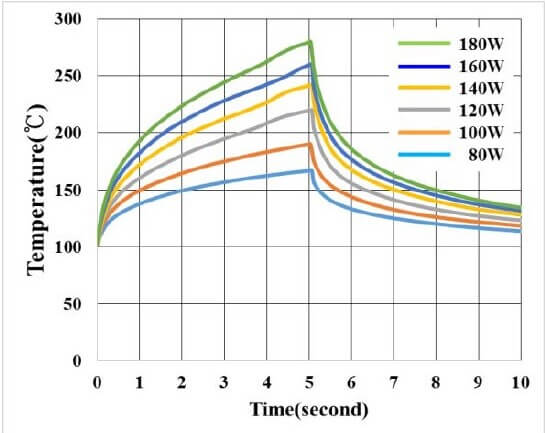 Variations of measured temperature with laser power are shown in Figure 3.