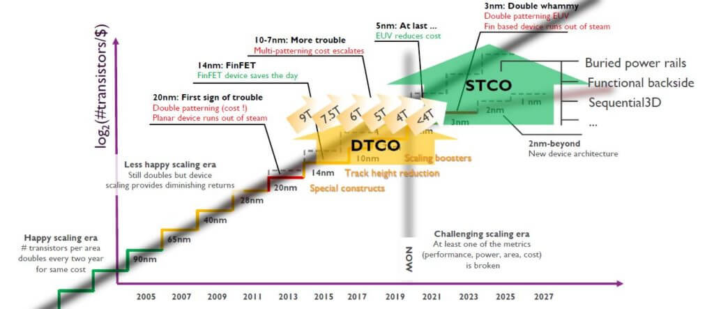 For many years, the semiconductor industry has lived in an era of ‘happy scaling’ – driven by the Law of Gordon Moore. In this era, dimensional scaling alone could provide each new technology generation with the required power-performance-area-cost benefits. But in the last 15 years, the chip industry has not been following that happy scaling path anymore. Dimensional scaling started to provide diminishing returns, marking the end of that era.