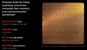This wafer-scale integration “die” for neural networks is 57 times larger than today’s largest GPU die and is built using TSMC’s 16 nm process. Power is supplied to these many cores from the back. A water-cooled heat-plate cools this large piece of silicon from the top. To improve yields, Cerebras enabled redundancy, using a smart interconnect network. How to develop software for running this chunk of silicon, how to test it and what kind of package it needs were not discussed during the November 13 luncheon.