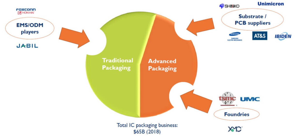 While packaging and assembly was traditionally the domain of outsourced semiconductor assembly and test (OSAT) service providers and integrated device manufacturers (IDMs), foundries, substrate/printed circuit board (PCB) suppliers and electronic manufacturers (EMS)/originial design manufacturers (ODMs) are entering the business and trying to cannibalize the OSATs positions. In the future IFTLE thinks this will also lead to M&A activity from these new players eager to get a foothold in the advanced packaging market segment (Figure .