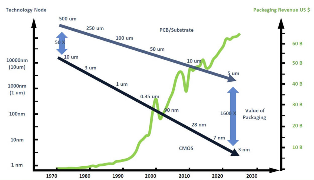 At the recent IMAPS Device Packaging Conference, Yole discussed how advanced packaging is leading electronics into the next decade. As you have heard from IFTLE for many years now, scaling is falling into the background as advanced packaging is taking the lead in determining the majority of new product innovations.