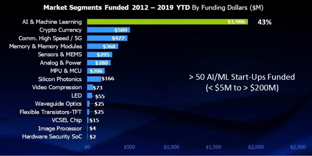In the ASE presentation on how “Integration Technologies are Transforming the World” they pointed out that nearly half the VC funding for electronics is being poured into artificial intelligence (AI) and machine learning (ML) and that 2.5 and 3D packages are in fact enabling performance hardware for such deep learning applications.