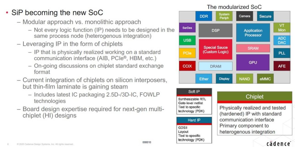 He actually showed a slide touting chiplets and IC disintegration as the new leading edge and saying that all Cadence EDA tools will be usable with new chiplet based packaging solutions (Figure 5).