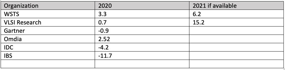 The World Semiconductor Trade Statistics (WSTS) forecast was released on June 9th, revising the 2020 semiconductor forecast they made in December of 5.9% growth to 3.3% growth, which is currently at the high end of the semiconductor forecasts. However, the WSTS report was released in June, whereas most of the other organizations had released forecasts earlier in the quarter, so they have had longer to look at the situation and develop their assumptions.
