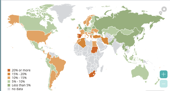 Unemployment in the United States reached 30+ million at one point, and currently appears to be hovering at 13.3%; however, Forbes reported that Bureau of Labor Statistics made a 5 million person error so unemployment is actually in the 16.1% range The International Monetary Fund (IMF) is showing worldwide unemployment at 8.3% in April of 2020 for advanced economies, up from 4.3% in 2019. A significant increase in the advanced economies unemployment rate (Figure 1)