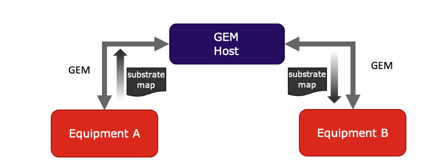 Substrate mapping is an excellent demonstration of horizontal communication implemented using GEM. Horizontal communication is when data is shared directly from one equipment to another equipment. Traditionally, horizontal communication in GEM is implemented indirectly; one equipment passes data to the host and then the host passes that data on to the equipment that needs it. In this sense, the GEM host acts as a type of broker between units of equipment.