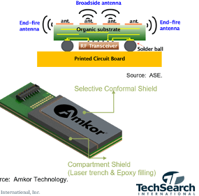 In addition to integrating photonics, Vardaman highlighted that antenna in package (AiP) is a big driver of packaging innovation (Figure 4). Considering that 5G Frequency Range (FR) 1 operates at sub-6 GHz and FR 2 (mm-wave) band operates at about 10x the FR 1 frequencies, antennas are getting smaller and can be integrated, very close to the transceivers, in the package. Important is also that the high FR 2 frequencies demand new materials, to minimize insertion loss (a.k.a. loss tangent) and self-heating.
