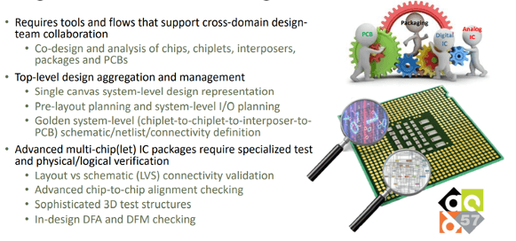 John Park, Product Management Director for Advanced IC Packaging at Cadence, reasoned why system and IC designers demand integration of chiplets in advanced packages and discussed some of the technical challenges for our industry. Figure 3 shows a high-level overview of important design tools/flows/methodologies needed, to optimize die-package-board co-design.