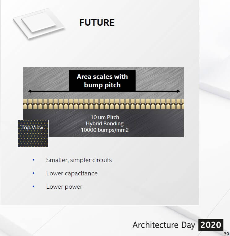 The new packaging disclosure was that “…Hybrid bonding test chips were taped out in Q2, 2020. Hybrid bonding is an alternative to traditional “thermocompression” bonding used in most of today’s packaging technologies. This new technology enables very aggressive bump pitches of 10 microns and below, delivering much higher interconnect density and bandwidth, along with lower power.”