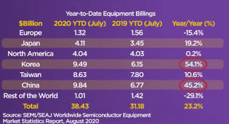 Table 1: Year-to-date equipment billings indicates CAPEX growth in Asia is surpassing in other regions. (Courtesy of SEMI)