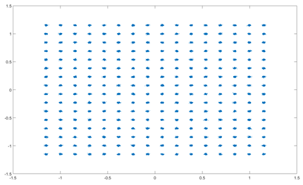 CP-OFDM is for downlink (D/L), with quadrature phase-shift keying (QPSK), 16-QAM, 64-QAM, and 256-QAM. It has high spectral efficiencies and is compatible with MIMO and 4G LTE definitions. DFT-S-OFDM is for uplink (U/L), with π/2- binary phase-shift keying (BPSK), 16-QAM, 64-QAM, and 256-QAM. It has a more complex implementation and has less flexible resource assignments compared to CP-OFDM and it is not used in combination with MIMO. The five sub-carrier spacings for 5G NR are between 15 kHz to 240 kHz. Figure 4 shows a 256-QAM plot.