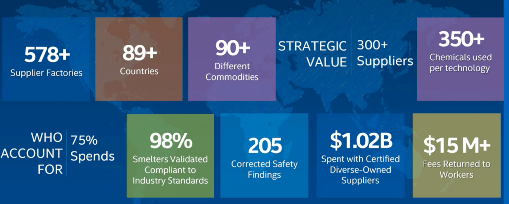 Adam Schafer of Intel presented on Intel’s supply chain and Responsibility, Inclusive, Sustainable, and Enabling (RISE) model. As shown in the graphic below, Intel operates in over 89 countries with 578 supplier factories. This presents a huge challenge in monitoring and evaluating your Scope 3 carbon emissions. Schafer shared that while Intel has had a focus on sustainability for many years. The RISE model is a result of bringing all the departments together and creating one set of goals across the company. One can hope that Intel’s sustainability efforts will not just have an impact on how the Semiconductor industry addresses the carbon problem, but will cause Intel’s customers to participate at a greater level in helping to address the world’s carbon footprint.