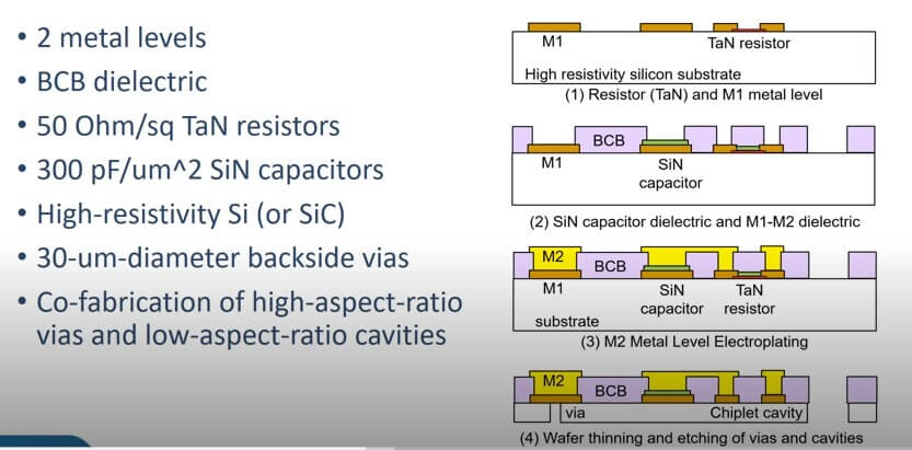 HRL’s Florian Herrault discussed chiplets-in-wafer (CiW) as a demonstration of high-frequency circuits with GaN chiplets in silicon interposers using their metal embedded chiplet assembly for microwave ICs (MECAMIC) technology.
