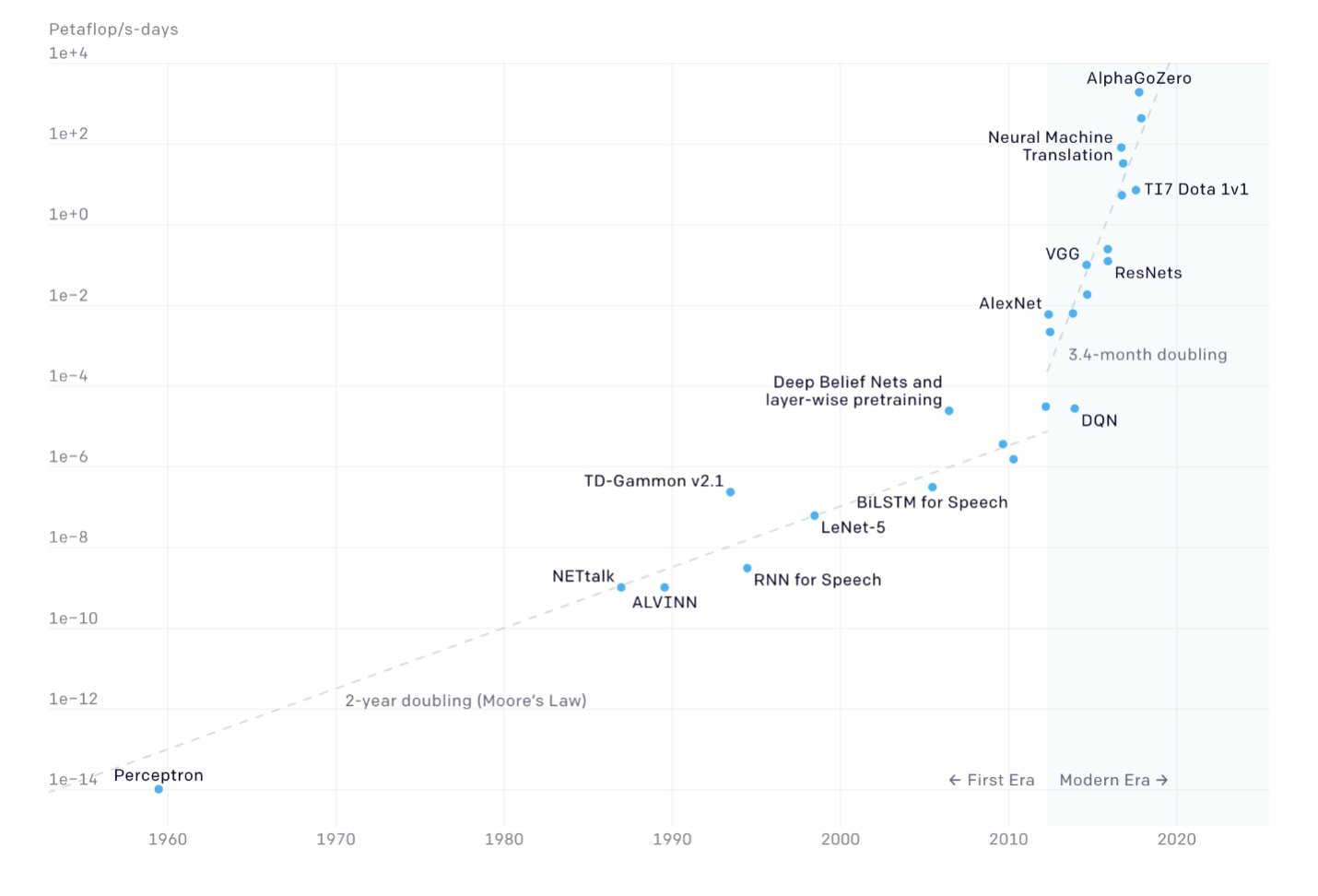 Bitcoin mining is not the only energy hog in the HPC room. The teach component of artificial intelligence (AI) consumes a considerable amount of energy. Figure 1 by Open AI shows the increasing amount of compute needed to train systems. A couple of other studies, one by the University of Massachusetts, Amherst found that the electricity consumed during the training of a transformer, a type of deep-learning algorithm, can emit more than 626,000 pounds of carbon dioxide. The energy amounts generated vary depending upon the requirements of the teach cycle (Figure 2).