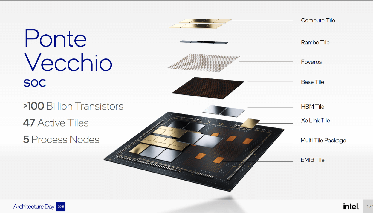 Kelleher then presented on a subject that would then be discussed in great detail on Architecture Day: One of Intel’s new systems the Ponte Vecchio GPU. This is Intel’s first product using EMIB and the second generation of Foveros demonstrating the rapid adoption and implementation of 3D packaging by Intel. The discussion around Ponte Vecchio highlighted the new architectures Intel introduced for I/O, Memory, IP, and SOC, along with new software, verification power delivery, packaging, and other aspects needed to make this processor come together.