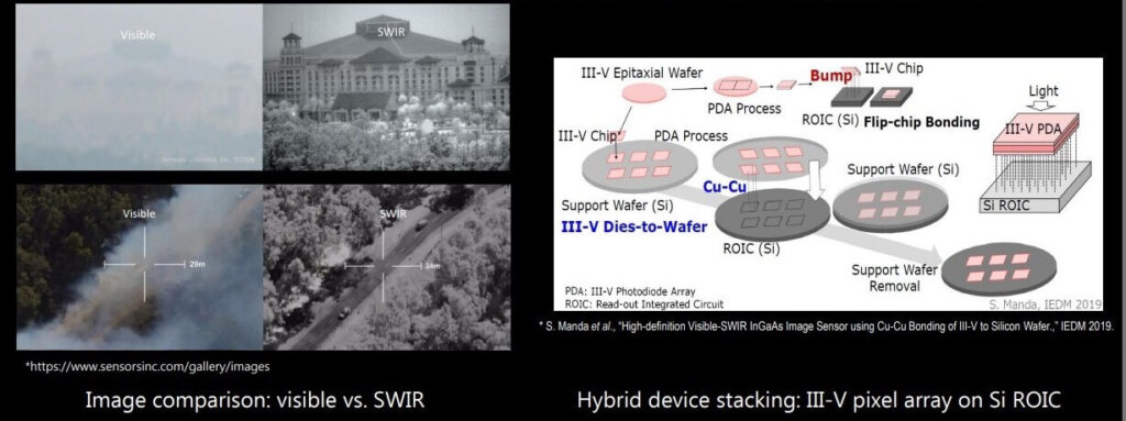 A way to expand human vision capability is to go beyond the visible spectrum. Of special interest are the near-infrared (NIR) and short-wave infrared (SWIR) regions. Near IR can use silicon devices but SWIR requires compound semiconductors. SWIR can see through water ( i.e. rain and fog) and smoke.