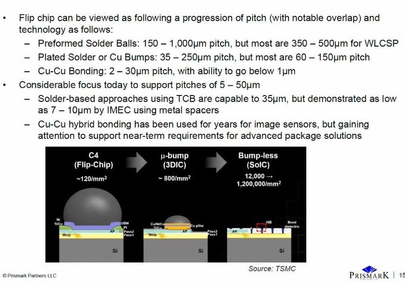 Prismark sees all major players are moving to hybrid bonding solutions in order the achieve the density requirements of the future.