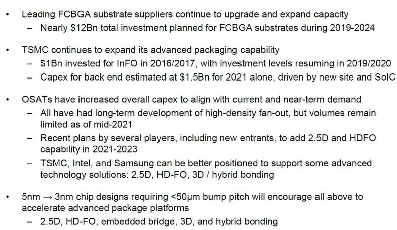 Recently there have been major investments in advanced packaging as shown in Figure 4.