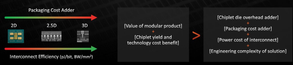 Swaminathan noted that no single packaging architecture works well for all products and that choices are made based on power, performance, area, and cost (Figure 4).