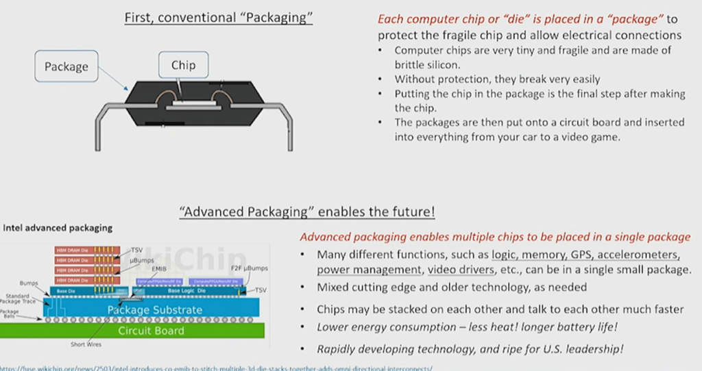 Dr. Gayle then discussed some of the challenges the NIST and other technical government departments have had in explaining semiconductor chips and packaging to government officials. With the shortages in chips for everyday items and automobiles, one would think that our educated elected officials would be able to distinguish a semiconductor chip from a potato chip or a corn chip. And that perhaps someone on their staff would have enough technical wherewithal to help them understand packaging and advanced packaging, but unfortunately, that is not the case and from Dr. Gayle’s comments, it appears a great deal of rudimentary education regarding semiconductors is needed (Figure 6).