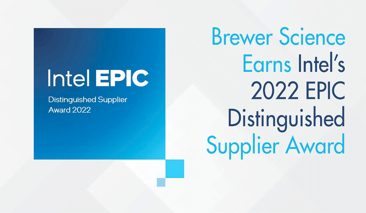 Rolla, MO. April 7, 2022 – Brewer Science, Inc., is proud to announce that it has earned Intel’s EPIC Distinguished Supplier Award. Through its dedication to excellence, partnership, inclusion, and continuous quality improvement, Brewer Science has achieved a level of performance that consistently exceeds Intel’s expectations.