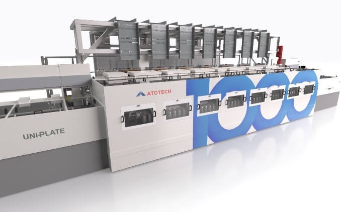 The sale of the 1,000th horizontal electrolytic copper plater complements Atotech’s horizontal lines from the ‘Uniplate’ family, which are already in operation at several flagship manufacturers worldwide. The order is in line with the current trend to ramp up production capacities for high-performance computing and advanced-packaging applications.